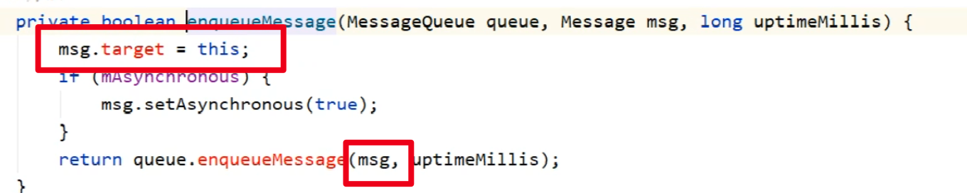 内存泄漏的本质:长生命周期对象持有了短生命周期的对象 导致短生命周期的对象不能被回收 首先app最长的生命周期的对象是 : 主线程 主线程有对应的looper以及messageQueue 这些是跟主线程绑定的不会被回收。 当子线程的handler发送一个msg时 msg.target会被赋值成handler存放在messageQueue中 这样handler就与主线程有了关联