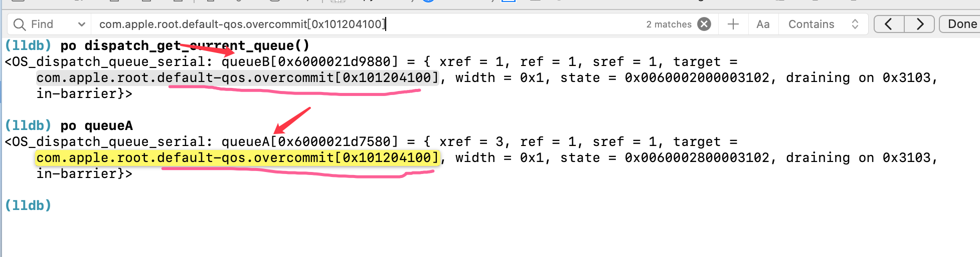 // BOOL result = dispatch_get_current_queue() == self.queueB; // 当前队列为queueA,不可以