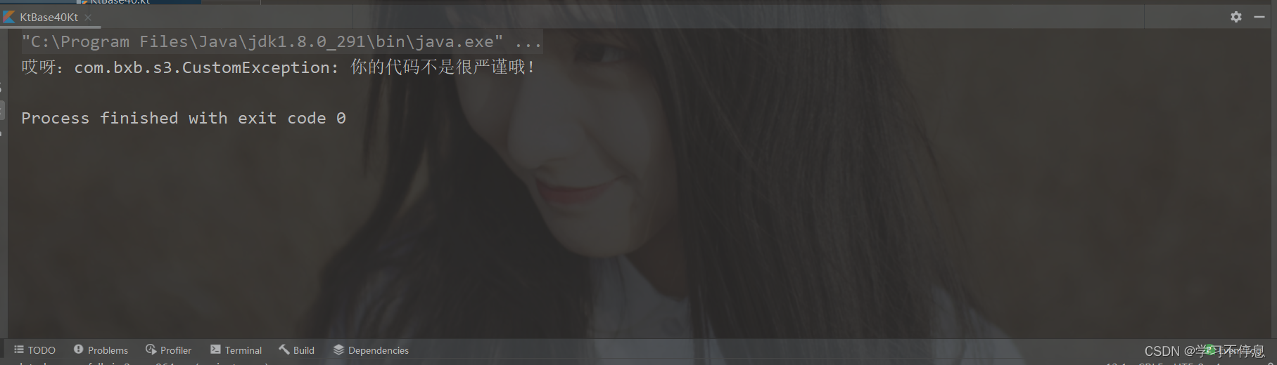 // TODO 40 Kotlin语法中异常处理与自定义异常特点