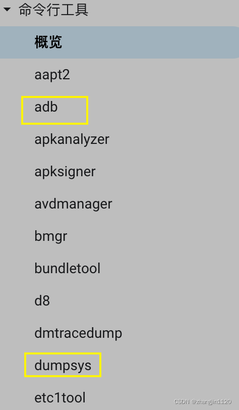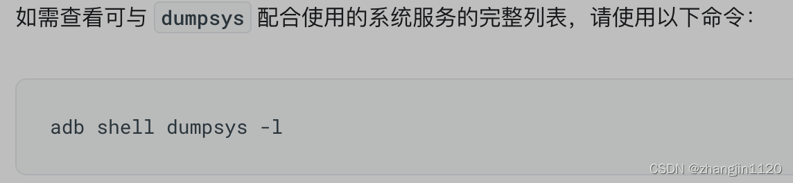 看看官方文档怎么说?https://developer.android.google.cn/studio/command-line/ 如下图:   输入adb shell dumpsys -l 试试看,截图如下:  完整输出内容如下: