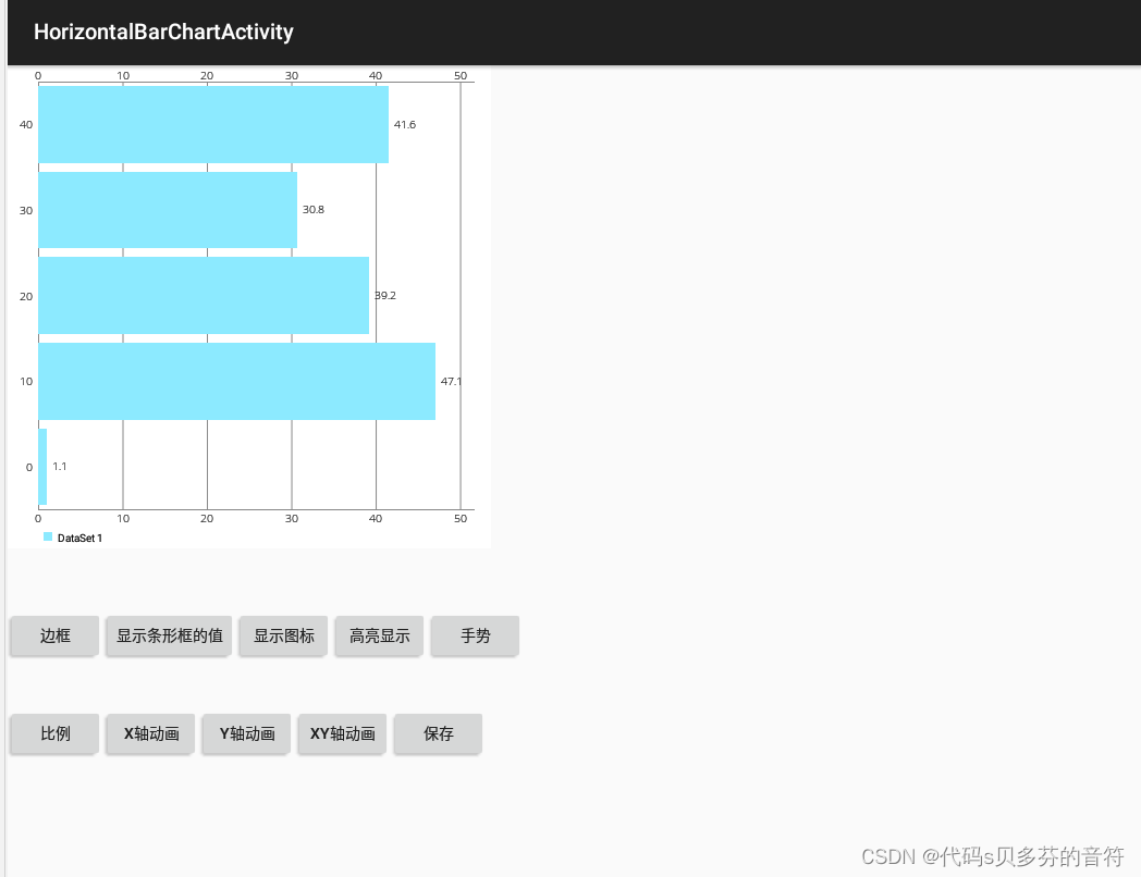 许多不同的图表类型:LineChart(线型图),BarChart(条状图,垂直,水平,堆叠,分组),PieChart(饼图),ScatterChart(散点图),CandleStickChart(K线图、蜡烛图),RadarChart(雷达图、蜘蛛网络图表),BubbleChart(气泡图) 组合图表(例如,一条线和一条条) 在两个轴上缩放(带有触摸手势,单独的轴或捏缩放) 拖动/平移(带有触摸手势) 分开的(双)y轴 突出显示值(带有可自定义的弹出视图) 将图表保存到SD卡(作为图像) 预定义的颜色模板 图例(自动生成,可自定义) 可自定义的轴(x轴和y轴) 动画(在x轴和y轴上建立动画) 极限线(提供其他信息,最大值等) 触摸,手势和选择回调的侦听器 完全可定制(绘画,字体,图例,颜色,背景,虚线等) 通过MPAndroidChart-Realm库支持Realm.io移动数据库 在Line-Chart和BarChart中平滑渲染多达10.000个数据点(在运行Android 6.0的2014 OnePlus One上测试) 轻量级(方法计数?1.4K) 可作为.jar文件使用(大小仅为500kb) 可作为gradle依赖项并通过Maven获得 Google-PlayStore演示应用程序 广泛使用,对GitHub和stackoverflow 都提供了强大的支持– mpandroidchart 也可用于iOS:图表(API的工作方式相同) 也可用于Xamarin:MPAndroidChart.Xamarin 对动态和实时数据的有限的支持