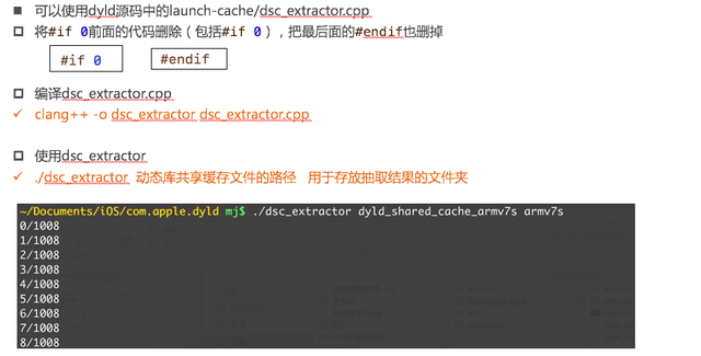 运用官方工具拆除出UIKit框架1.具体的步骤我用一个图片来显示(前提是你要下载源码并且用xcode打开)其实我们也可以把dsc_extractor放到我们的/usr/local/bin目录下,我这里没有放,那么直接就用./直接执行。 我的执行结果为: