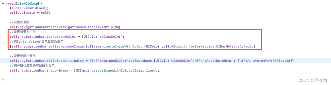 下面是我平时用开的自定义导航栏的封装,里面就做了几样东西: 1.设置屏幕竖屏 2.设置导航栏返回按键的图片,不带有文字 3.导航栏的背景颜色 4.标题栏的文字大小和样式 5.栈中不止一个控制器就把底部的tabbar隐藏    使用的时候很简单的。在tabbar的自定义封装里面添加控制器到ChildViewController时把导航栏一起创建   自定义tabbar我有一篇文章讲过的。