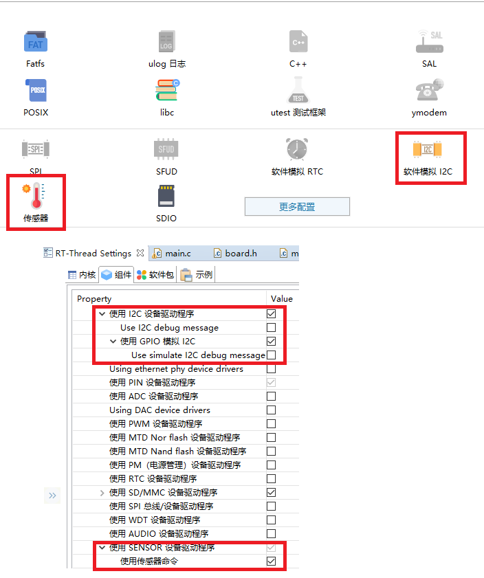RT-Thread Studio设置 使能如下组件并进行配置:  board.h 文件中使能I2C1:
