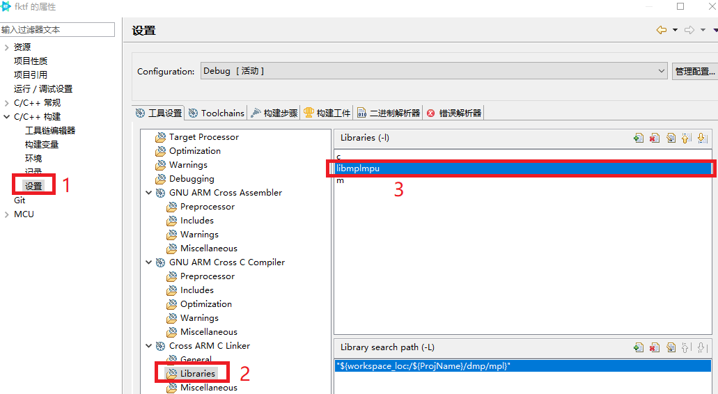 添加宏定义如下:  添加include路径:  添加库文件:  上面第三个图是添加库文件,要选择motion_driver_6.12官方原包里下的gcc编译环境对应的库文件(studio是gcc编译,正点原子是keil编译,方式不同),具体路径是“motion_driver_6.12\mpl libraries\arm\gcc4.9.3\liblibmplmpu_m4_hardfp.zip”,解压出来添加到studio项目。特别要注意的是,在添加库的时候,库文件名的前三个字母“lib”需要去掉。