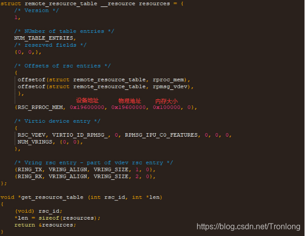 调用get_resource_table()获取资源表信息,资源表包含内存和virtio设备资源。virtio设备包含vring地址、vring大小和vring对齐方式等信息。