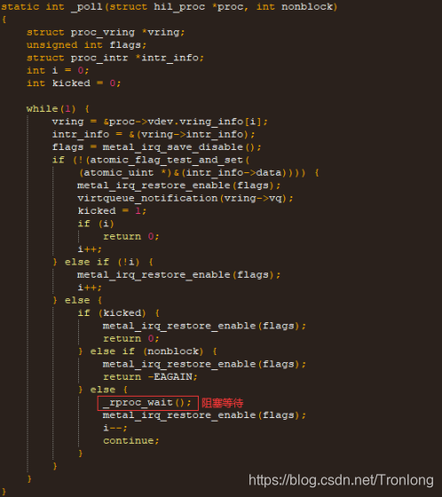 调用hil_poll()以阻塞的方式调用poll函数,并等待数据接收。