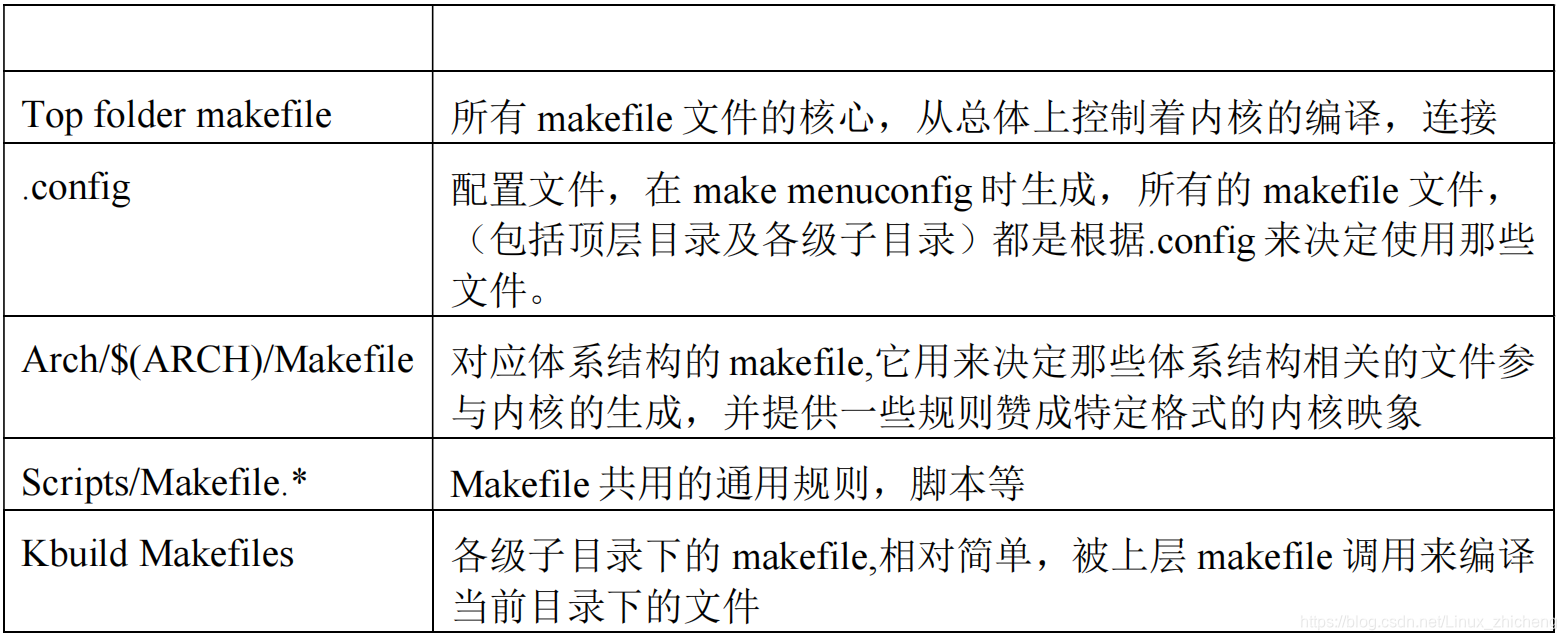 1. 全局的,适用于整个内核代码树。定义在 top makefile, arch/$(ARCH)/makefile 中定义,