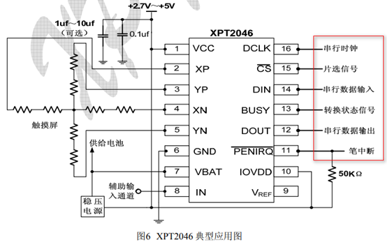 XPT2046与MCU的硬件连接