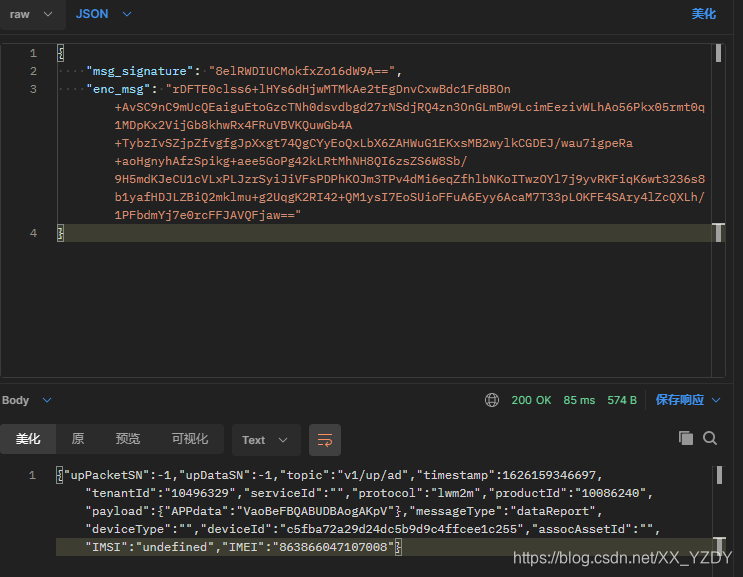 上面是加密的内容,下面是enc_msg字段进行解密后的结果。