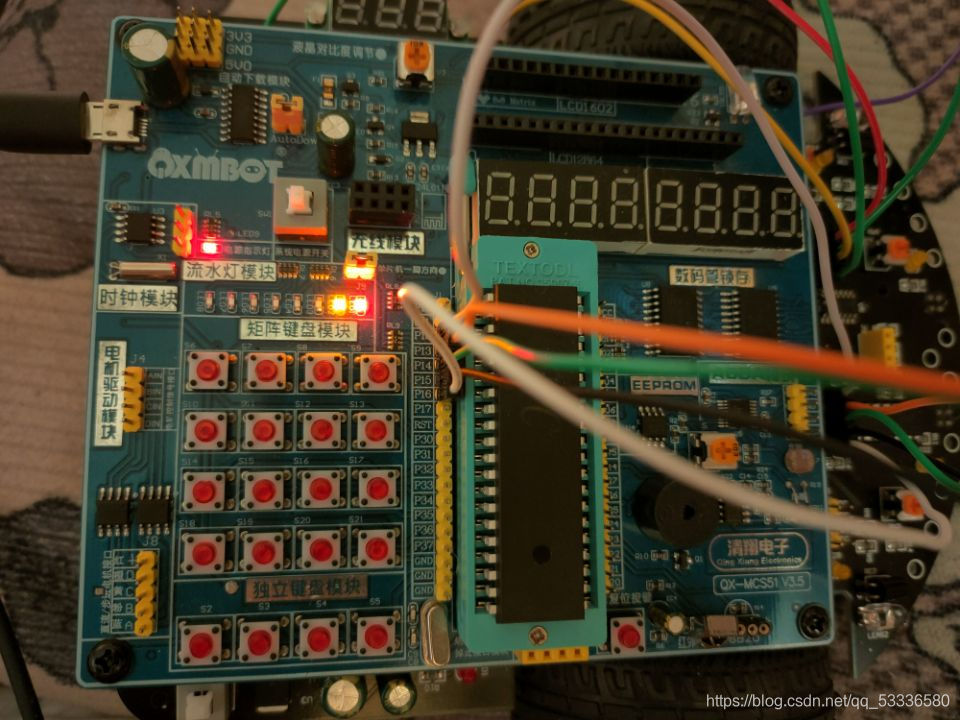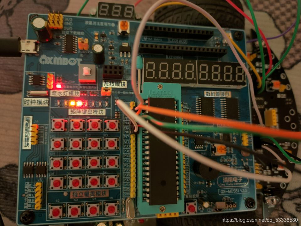 设计思路:通过keil4创建一个新项目,选用89C52芯片,再创建一个新文件,将文件添加到项目中。写出代码并编译无错后,生成.hex文件,将代码烧入核心板中,观察流水灯模块LED灯变化情况。(本人写的代码是实现流水灯变化)