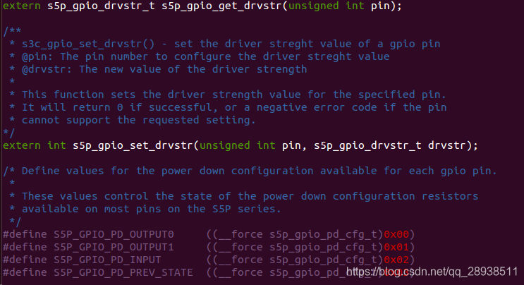 ????????– arch/arm/mach-exynos/include/mach/gpio.h ????????– GPIO管脚拉高拉低配置参数等等 ????????– 配置参数的宏定义应该在arch/arm/plat-samsung/include/plat/gpio-cfg.h文件中