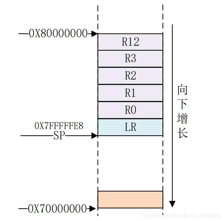 对 LR 进行压栈完成以后的堆栈模型如下图所示: