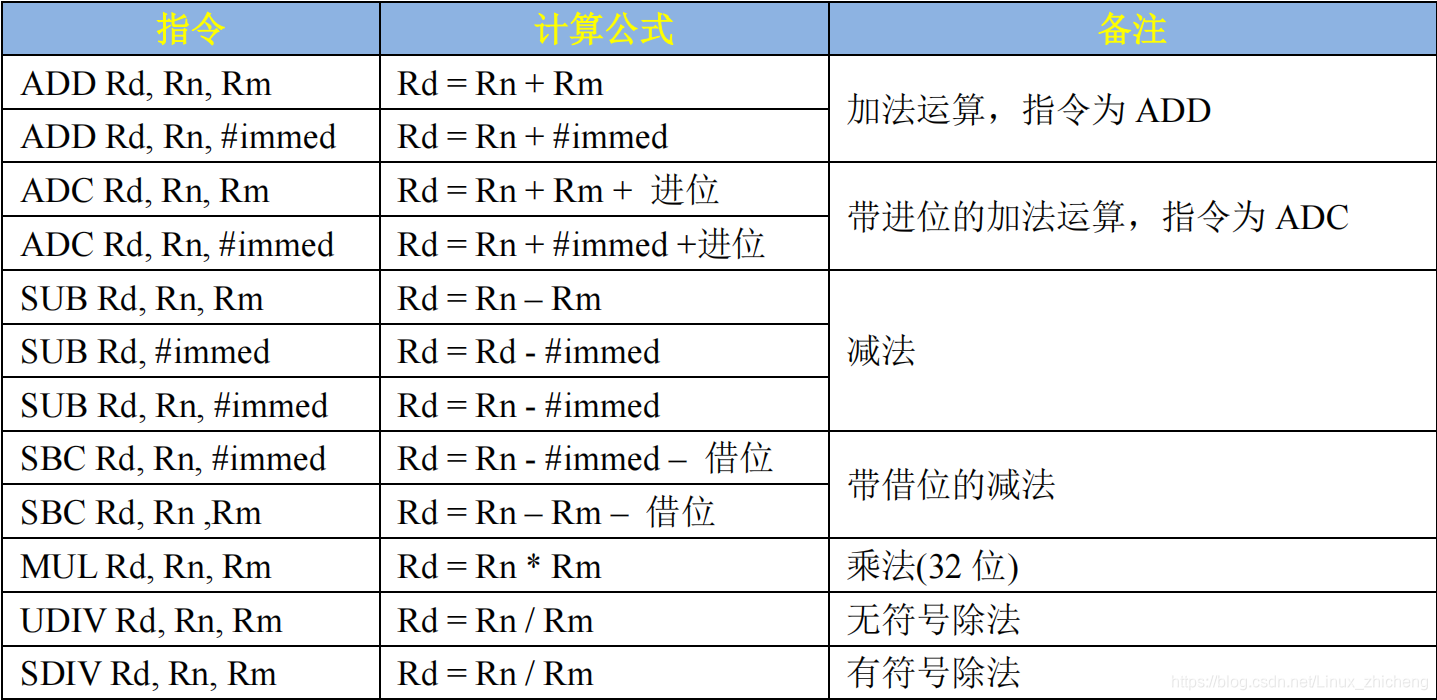在嵌入式开发中最常会用的就是加减指令,乘除基本用不到。