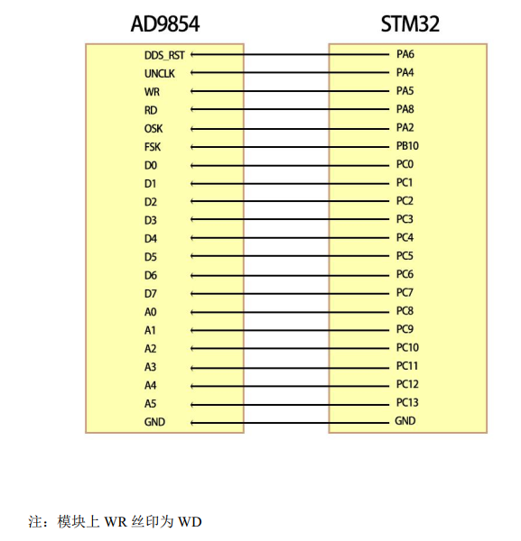 #define AD9854_WR PAout(5) //AD9854写使能,低有效
