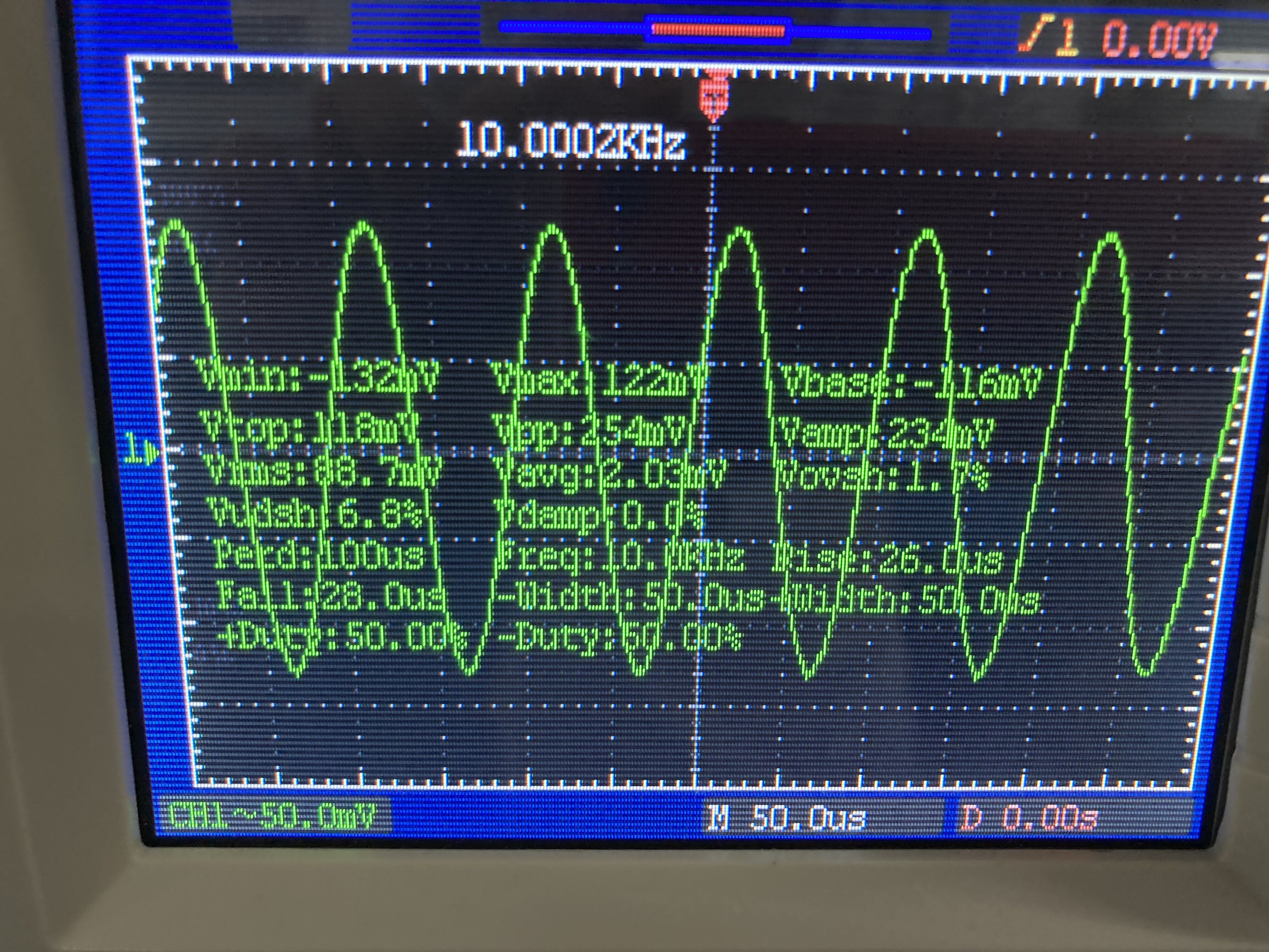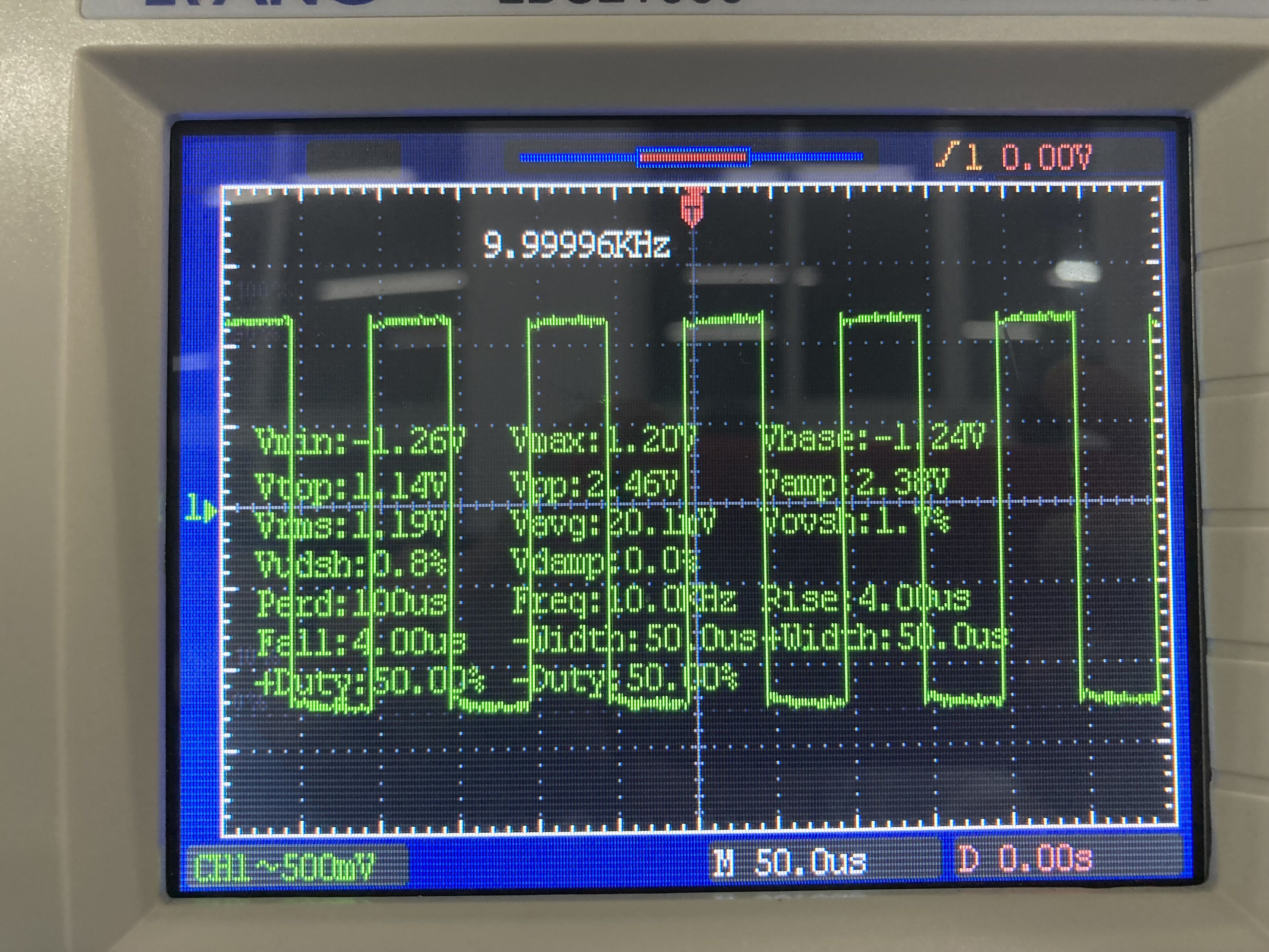 实现频率为10k,ad值为2040的输出;正弦波与方波接线及效果如图所示