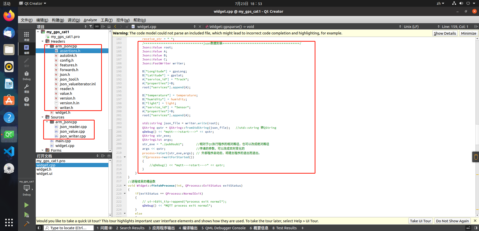 4.添加jsoncpp库 并封装数据(通过MQTT通讯协议 与华为云平台进行通信)