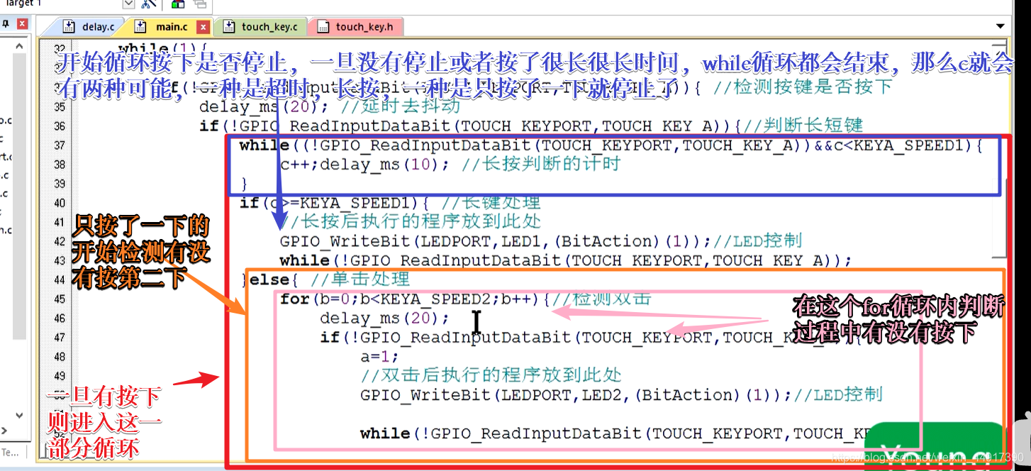 if(!GPIO_ReadInputDataBit(TOUCH_KEYPORT,TOUCH_KEY_C)){//判断长短键