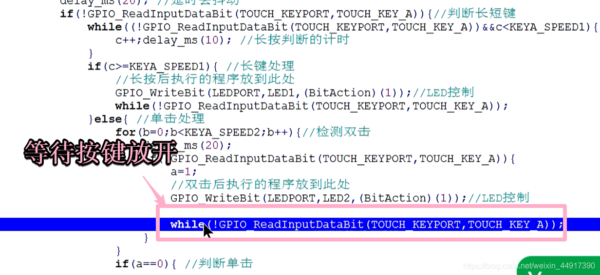 while(!GPIO_ReadInputDataBit(TOUCH_KEYPORT,TOUCH_KEY_A));