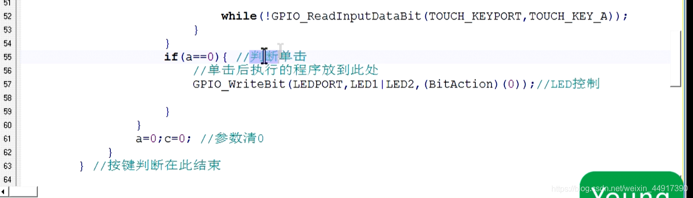 if(!GPIO_ReadInputDataBit(TOUCH_KEYPORT,TOUCH_KEY_A)){ //检测按键是否按下