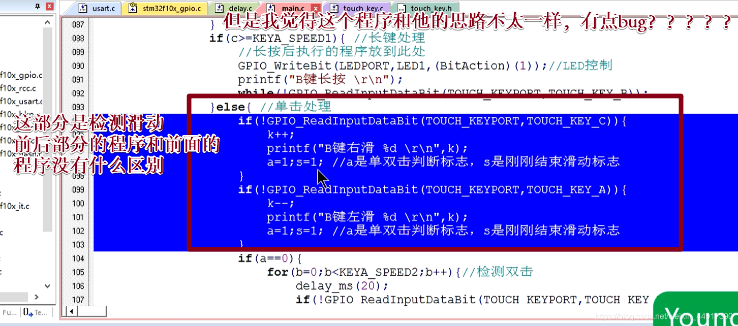 ? 二、触摸按键区分单击、双击、长按(下面是比较成熟的程序)