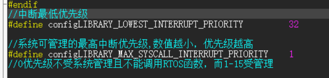 这一段的意思就是如果要在中断中使用RTOS中断,那就必须把优先级的值大于那个宏定义。