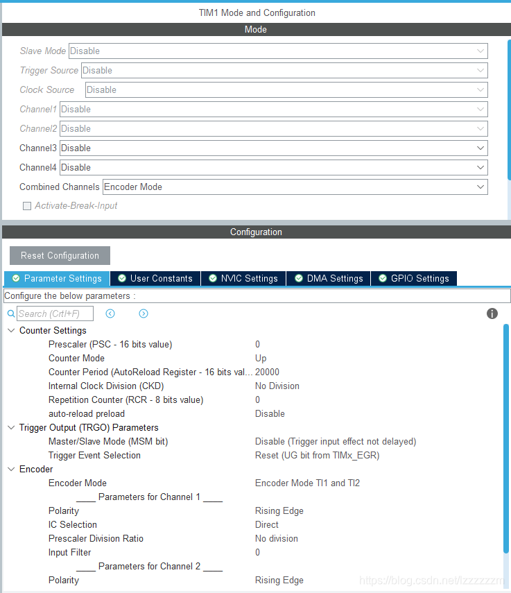 这里面修改Counter Period为20000,即代表,编码器计数器范围为0~20000.其他默认即可