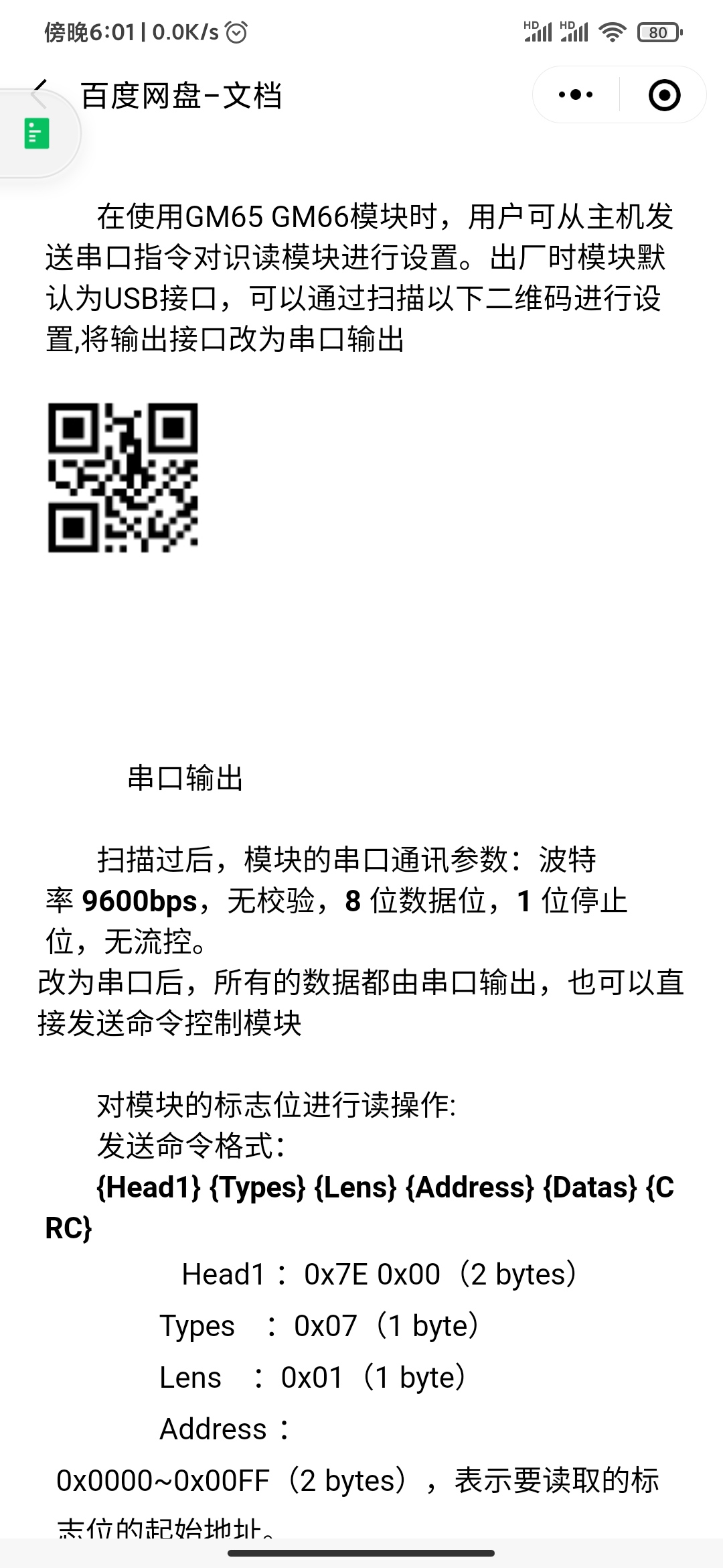 基于stm32f103正点原子开发板GM65扫描二维码模块的使用 在使用这个模块上电之后一定要扫描将其转换为串口的二维码。
