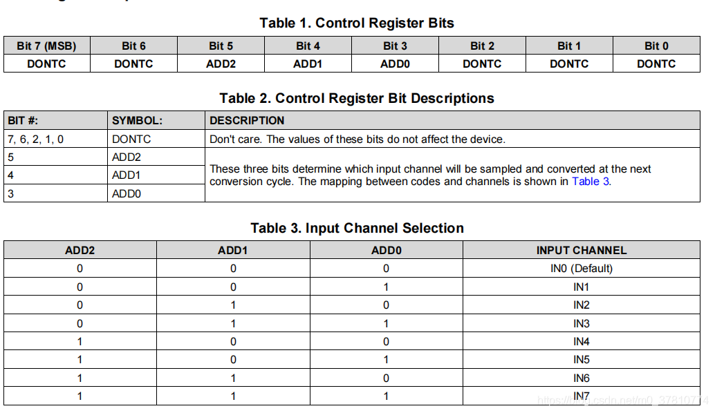 第一个字节只需要改变第3-第5位的值,确定要采样的通道,其他都可以填0;