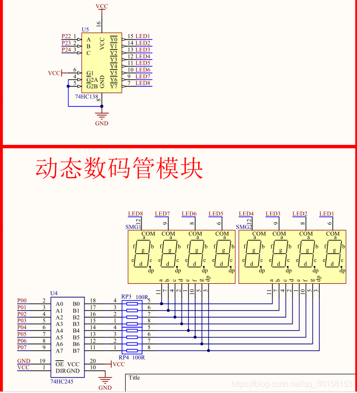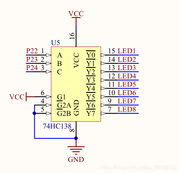 ?共阴数码管由这个3-8译码器控制亮灭,74HC138这个芯片数电里有,具体就不说了。