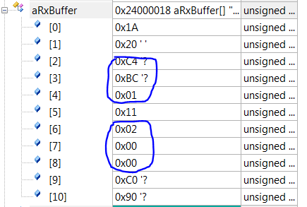 调试结果:圈内分别是单圈信息和多圈信息。放在接收中断或其他地方。