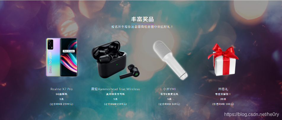 报名并全程参加者即有机会抽中幸运好礼,包括内嵌Andes RISC-V 核心系列的Realme X7 Pro 5G旗舰机(价值2,599元)、雷蛇Hammerhead True Wireless真无线蓝牙耳机(价值1,599元),以及小米YMI蓝牙K歌麦克风(价值169元),另有问券礼品等您来解锁,立即免费报名,把最新RISC-V 趋势及好礼带回家!