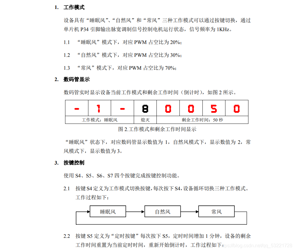 题目是用了s4,s5,s6,s7四个按键,是独立键盘。s4用来控制mode的值。s5用来控制倒计时,也定义一个countdown_mode变量在1-3之间循环,countdown_mode为1时倒计时为0,countdown_mode为2时倒计时为60,countdown_mode为3时倒计时为120。s6就是把countdown_mode设置为1。s7有两个状态,定义一个temp_m变量来控制,为1时显示室温模式,为0时显示工作模式。