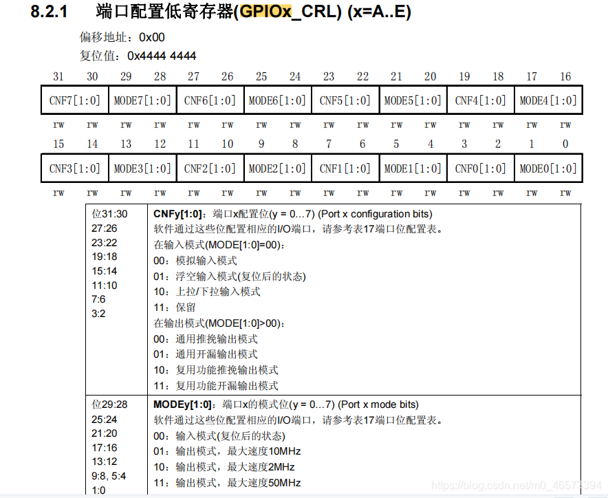 我们先查找对应的寄存器,发现PC3的设置在端口配置低寄存器(对应y=0-7)中?