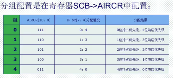 (1)先设置中断优先级分组(整个系统执行过程中,只设置一次中断分组);
