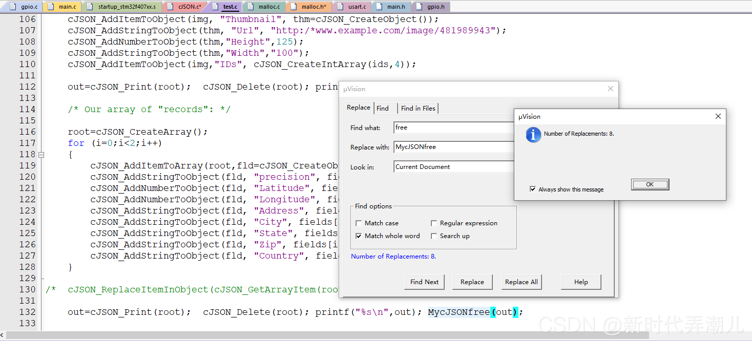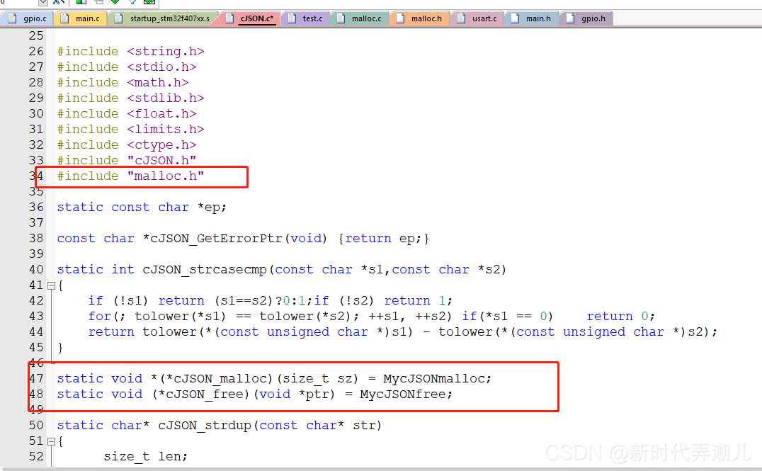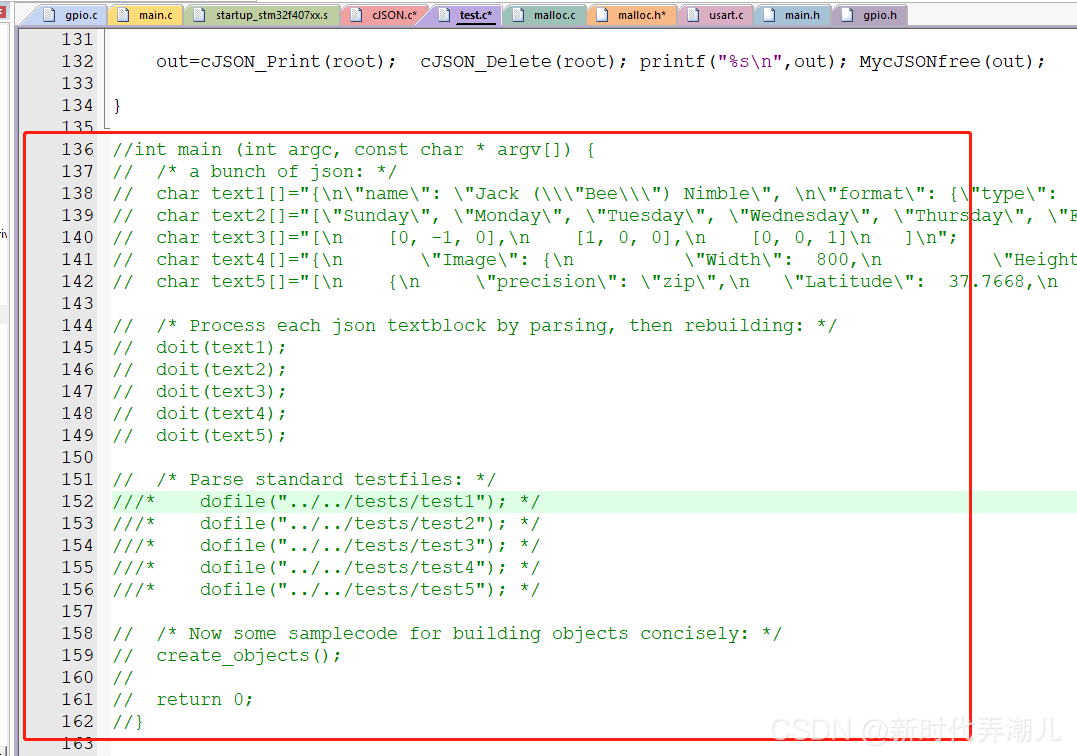 - 移植cJSON源码包中的cJSON.c cJSON.h test.c