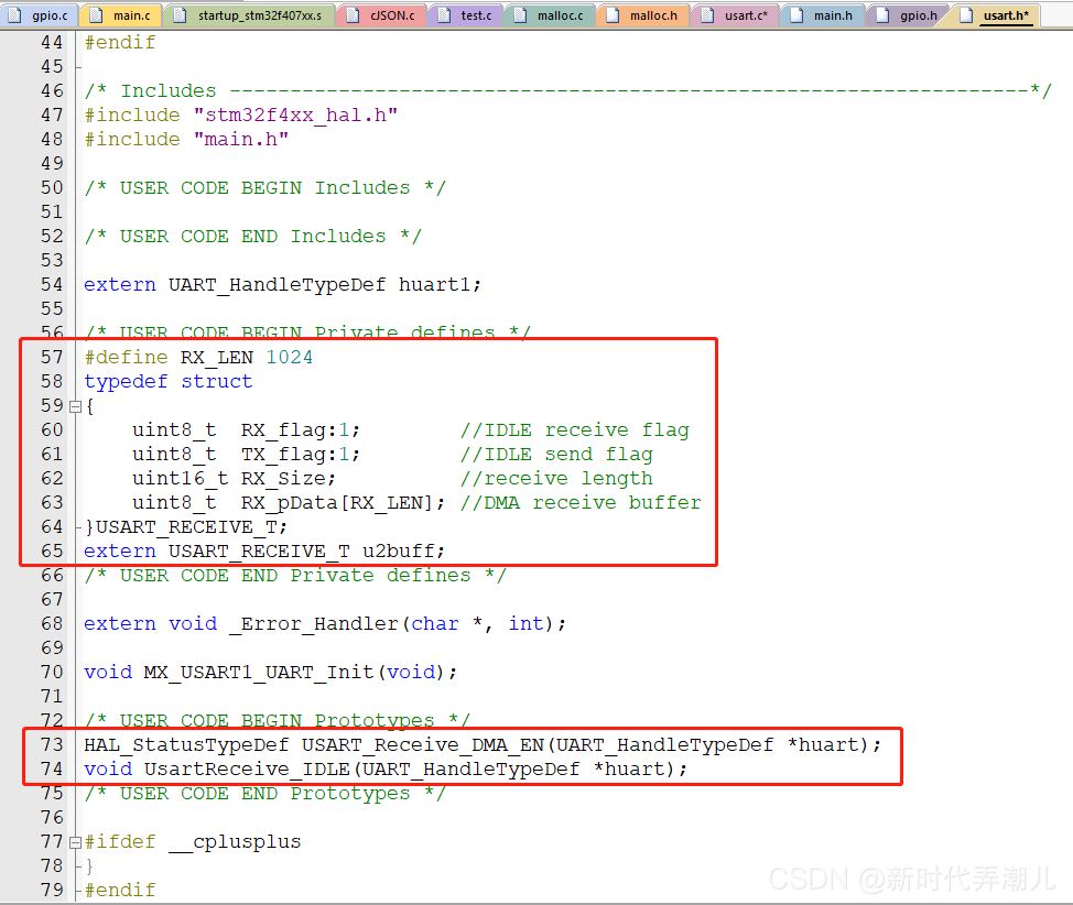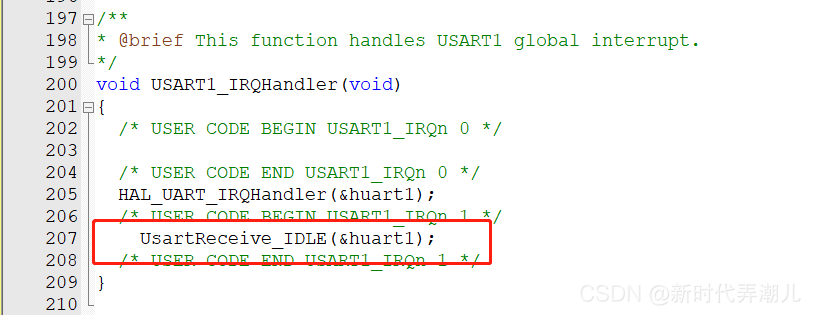 ?在stm32f4xx_it.c文件中增加串口空闲函数