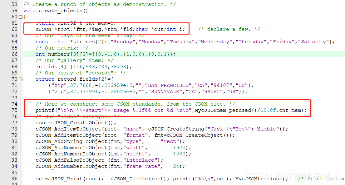 cJSON *root,*fmt,*img,*thm,*fld;char *out;int i; /* declare a few. */