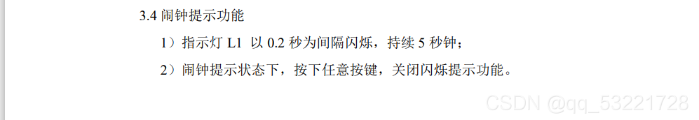 当时钟和闹钟的值一致时,L1以0.2秒为间隔闪烁持续5秒然后关闭,或者是在闪烁期间按任意键关闭。