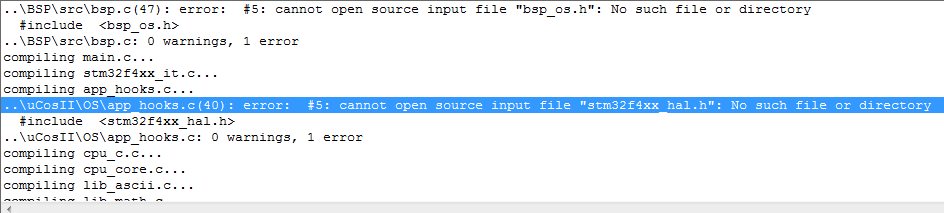 将\Micrium\Examples\ST\STM3240G-EVAL\BSP路径下bsp.c、bsp.h文件复制到\template\BSP文件夹下,并导入头文件到工程后编译,stm32f4xx_hal.h文件