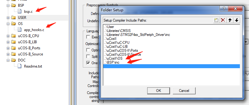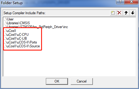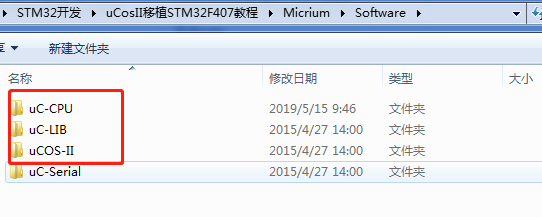 在工程模板下创建uCosII文件夹,将上图三个文件夹复制到uCosII文件夹路径下