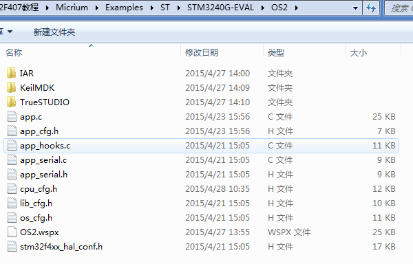 编译工程,提示缺少app_cfg.h文件,该文件在示例包\Micrium\Examples\ST\STM3240G-EVAL\OS2路径下