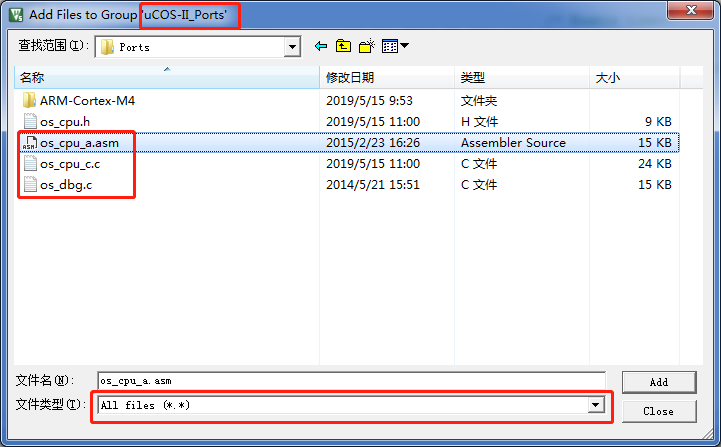 cpu.h、cpu_c.c、cpu_a.asm | \Micrium\Software\uC-CPU\ARM-Cortex-M4\RealView | \Micrium\Software\uC-CPU | lib_mem_a.asm | \Micrium\Software\uC-LIB\Ports\ARM-Cortex-M4\RealView | \Micrium\Software\uC-LIB | os_cpu.h、os_cpu_a.asm、os_cpu_c.c、os_dbg.c | \Micrium\Software\uCOS-II\Ports\ARM-Cortex-M4\Generic\RealView | \Micrium\Software\uCOS-II\Ports |