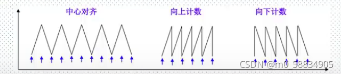 ③中央对齐模式(向上/向下计数) :计数器从0开始计数到自动装入的值-1,