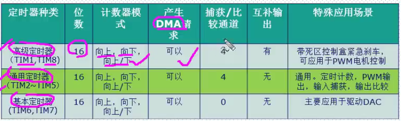 通用定时器可以向上计数、向下计数。向上向下双向计数模式。