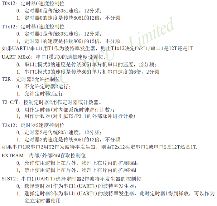 定时/计数器0(T0)有四种工作方式:16位自动重装模式、16位不可自动重装模式、8位自动重装模式和不可屏蔽中断的16位自动重装模式;T1除了模式3无效(T1在模式3时,停止计数)以外,其他工作方式与T0相同;T2、T3和T4的工作模式固定位16位自动重装模式,可以当定时器使用,也可以串口的波特率发生器和可编程时钟输出。本次的学习板(STC15F2K60S)只有T0、T1和T2。