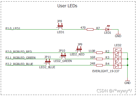 ? ?接下来尝试点亮RGB三色LED,原理和点亮红色LED相同,但是可以混合出来不同的颜色。