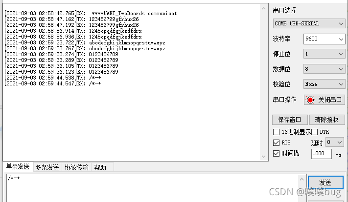 ?根据需要设置波特率和数据宽度等参数,在此使用?9600,8,N,1