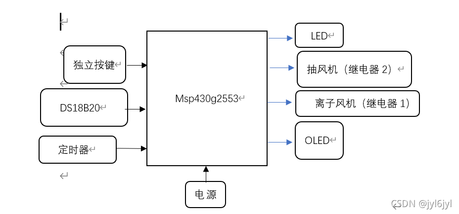 2. 定时器:时间到开启值(开启时长),离子风机(继电器1闭合)和抽风机启动(继电器2闭合)时间到关闭值(关闭时长)离子风机(继电器1打开)和抽风机启动(继电器2打开)