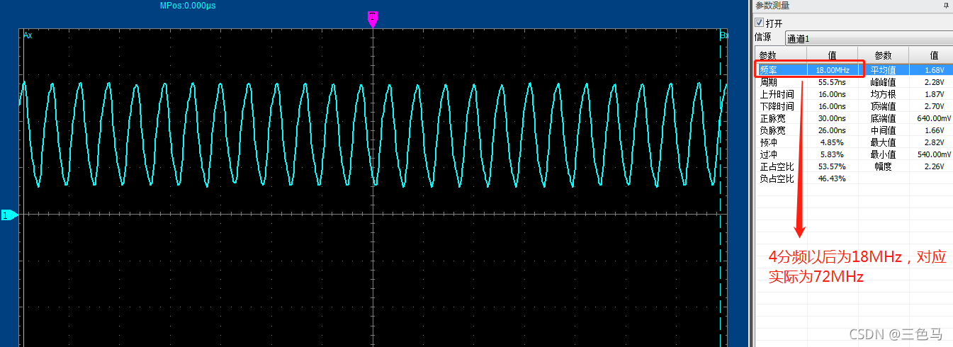 测量方法:示波器一个探头接PC9,另一个探头接GND;